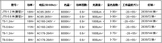 玻璃燈管參數: