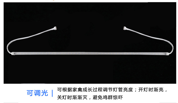 2、可調(diào)光,0-100%可調(diào),根據(jù)家禽成長過程調(diào)節(jié)燈管亮度;開燈時漸亮,關(guān)燈時漸漸滅,
