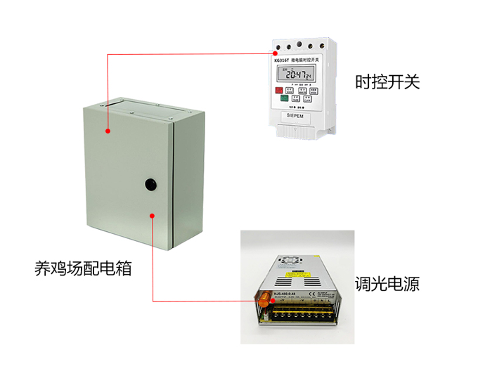 5、調(diào)光配電箱可添加智能控制可模擬自然燈光日出日落變化,根據(jù)雞不同成長階段的光照要求預先設(shè)定好程序,一次設(shè)定,免于維護。