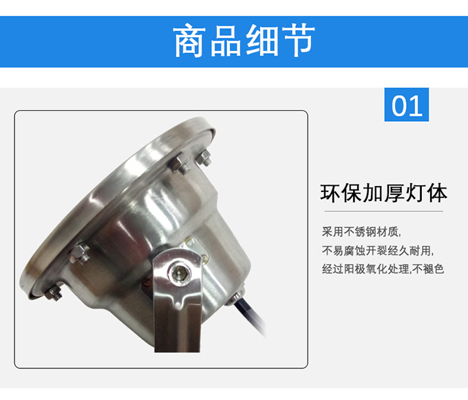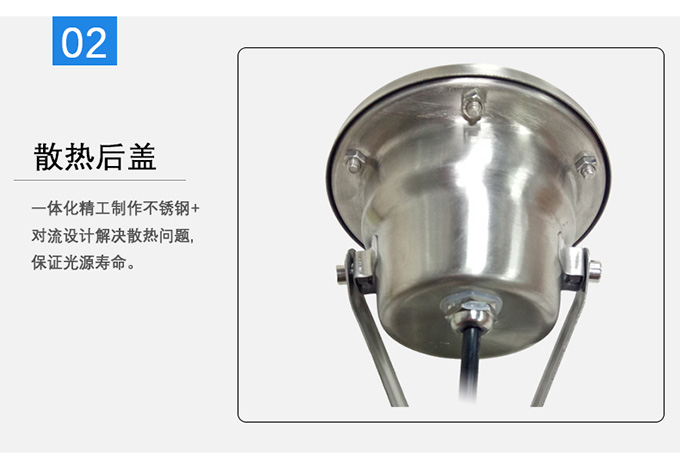 2、一體化精工制作不銹鋼+對(duì)流設(shè)計(jì)解決散熱問題,保證光源壽命。